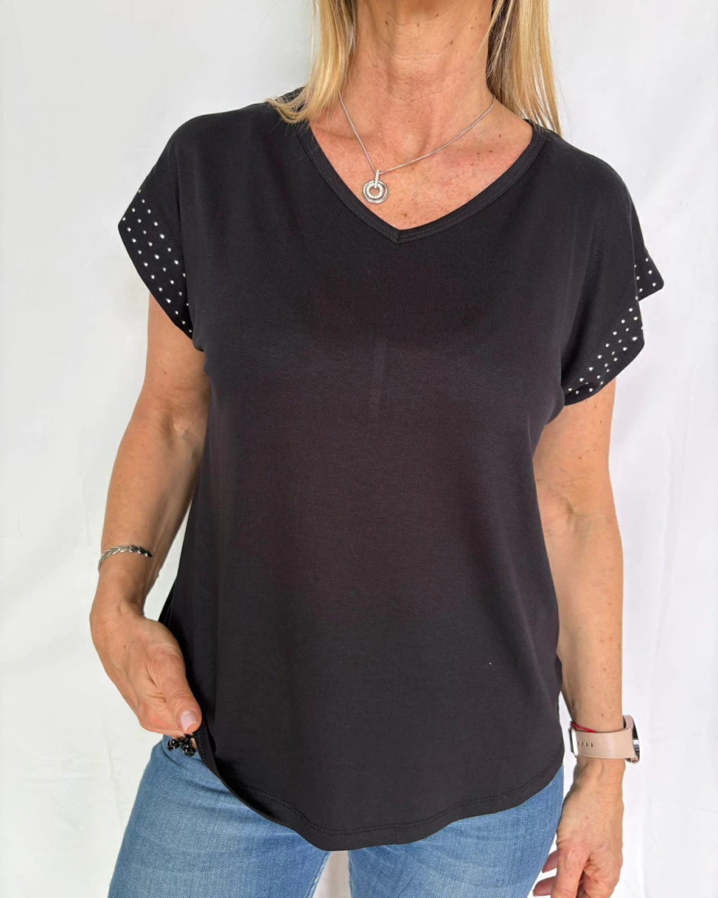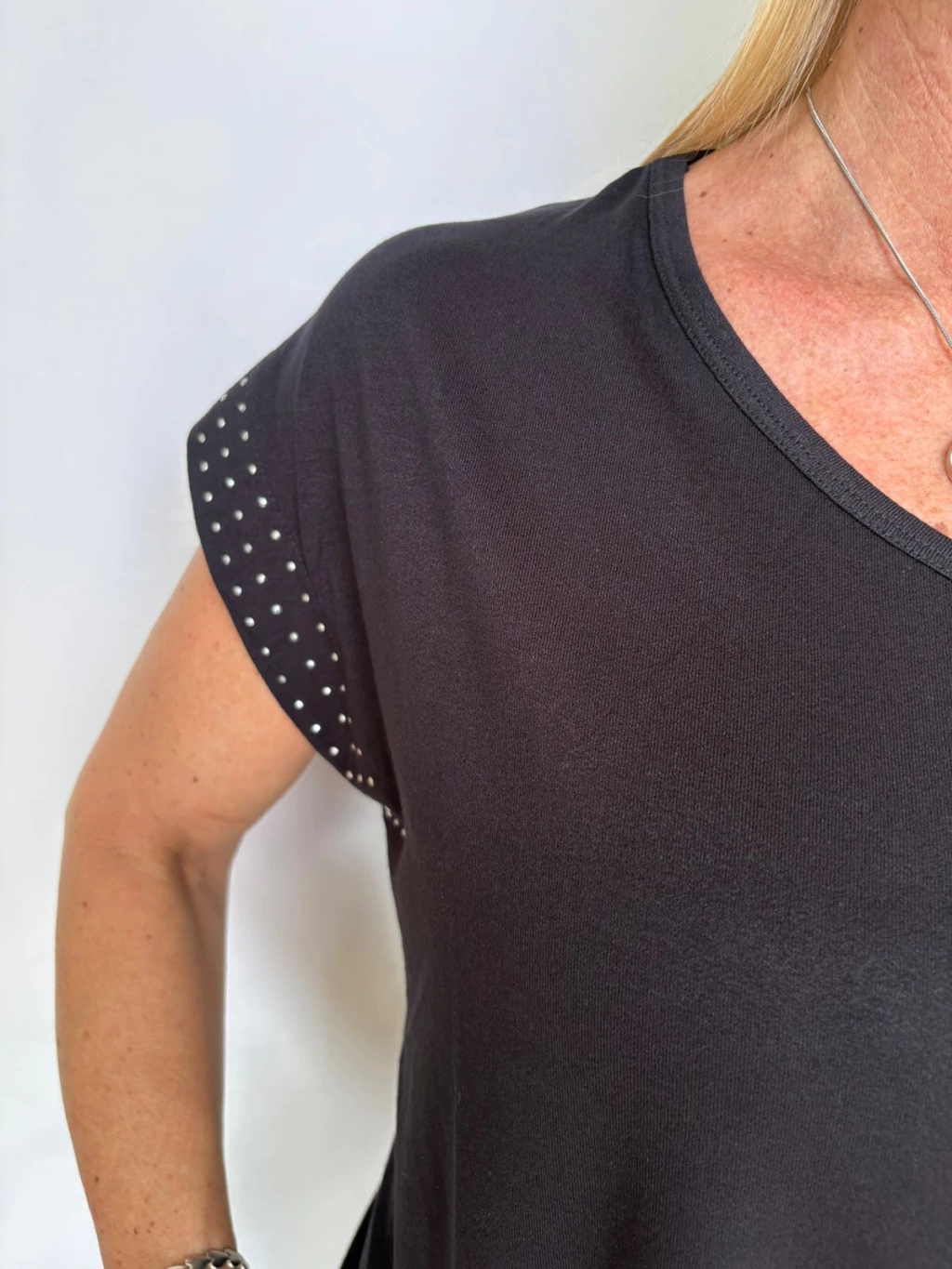 Remera de crepé viscosa con tachitas